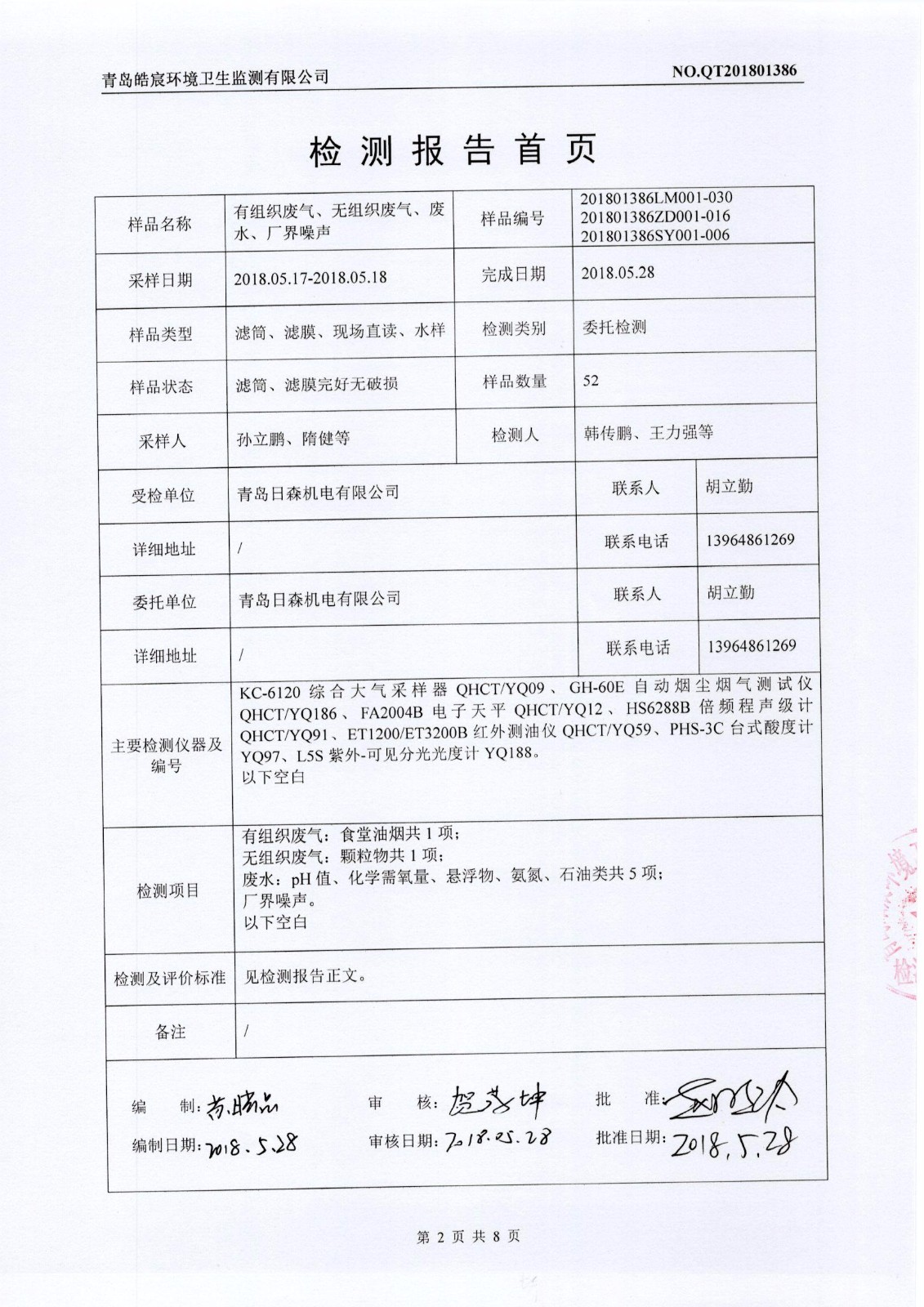 關于日森機電有限公司廢水、廢氣、噪聲監測報告的公示